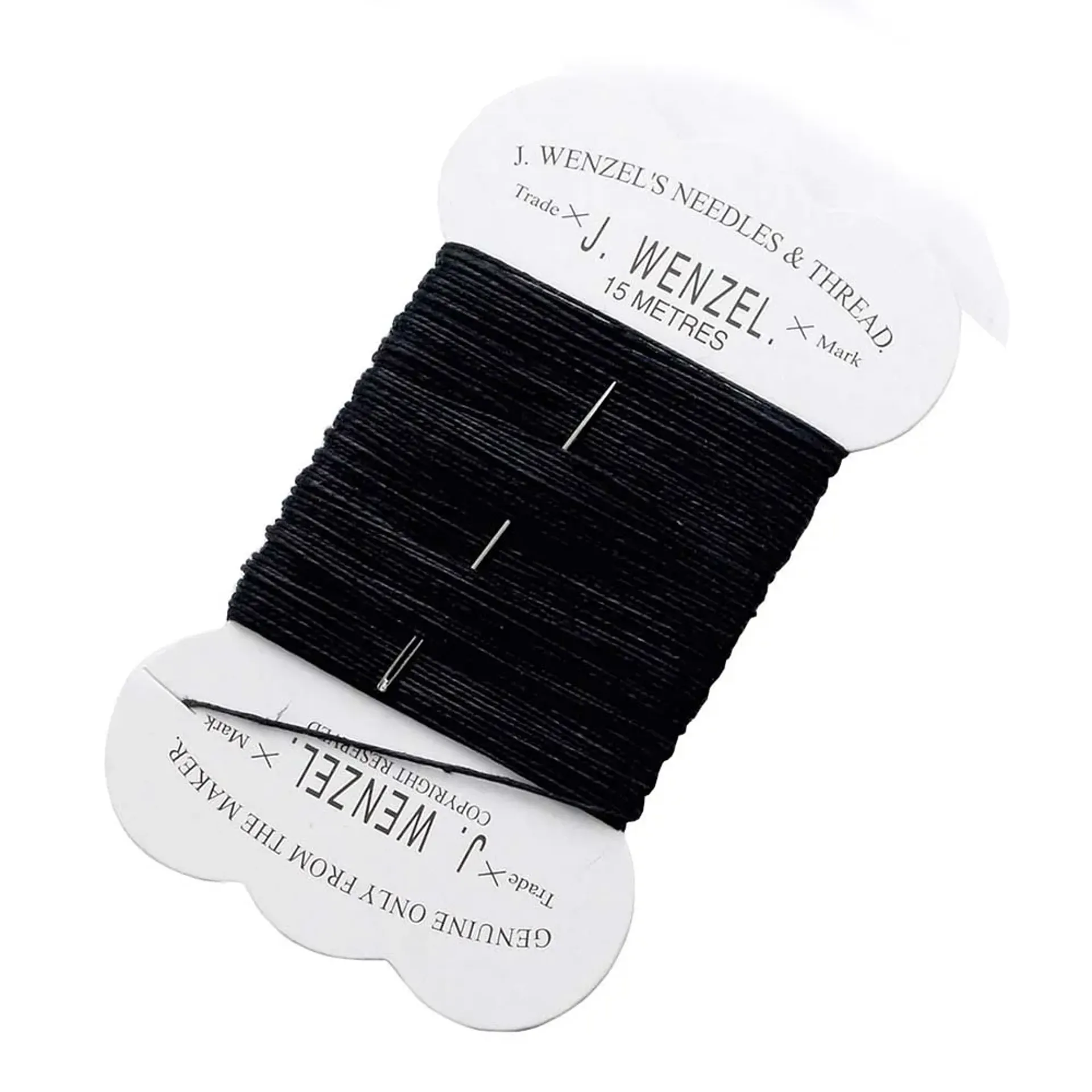 15 metres of Wenzel plaiting thread on a card complete with needle. Available in Black, Brown, or White thread