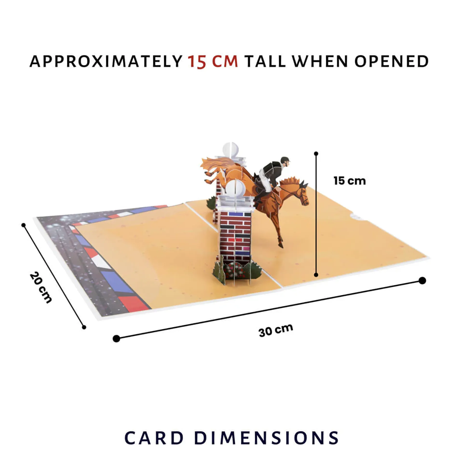 Designed with the discerning horse enthusiast in mind, our cards are sure to evoke a sense of joy and wonder with the attention to detail. Whether they're a seasoned rider or simply admires the grace and power of horses, our show jumping pop-up cards are the perfect way to celebrate her love for all things equine.