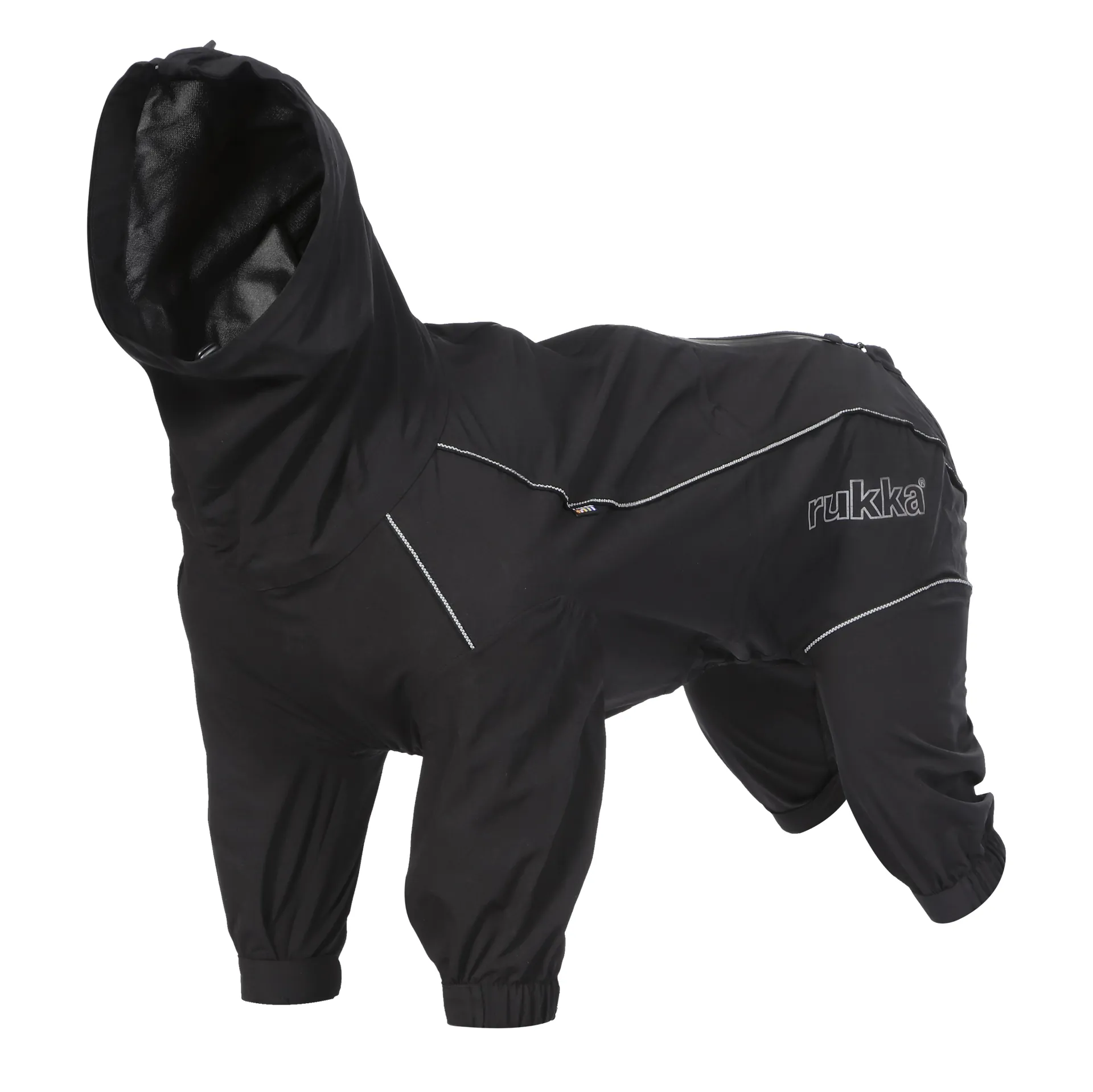 Practical Protect overall to protect the dog from the wind and rain. Taped seams, a covered opening for the leash and a waterproof zip closure complete the protection provided by the overall made of completely waterproof fabric. The fabric stretches to make the overall comfortable to wear and it allows the dog to move freely, even in the most challenging environments. Thanks to the touch- fastening closure on each leg end, the overall is easy to adjust to fit different sized paws and to keep water and dirt out. An adjustable waist and neckline add the final touch for the perfect fit and protection. A high, adjustable collar to cover the dog’s neck. The collar can be raised to provide protection for the ears from the wind. The overall has reflective piping and logo.