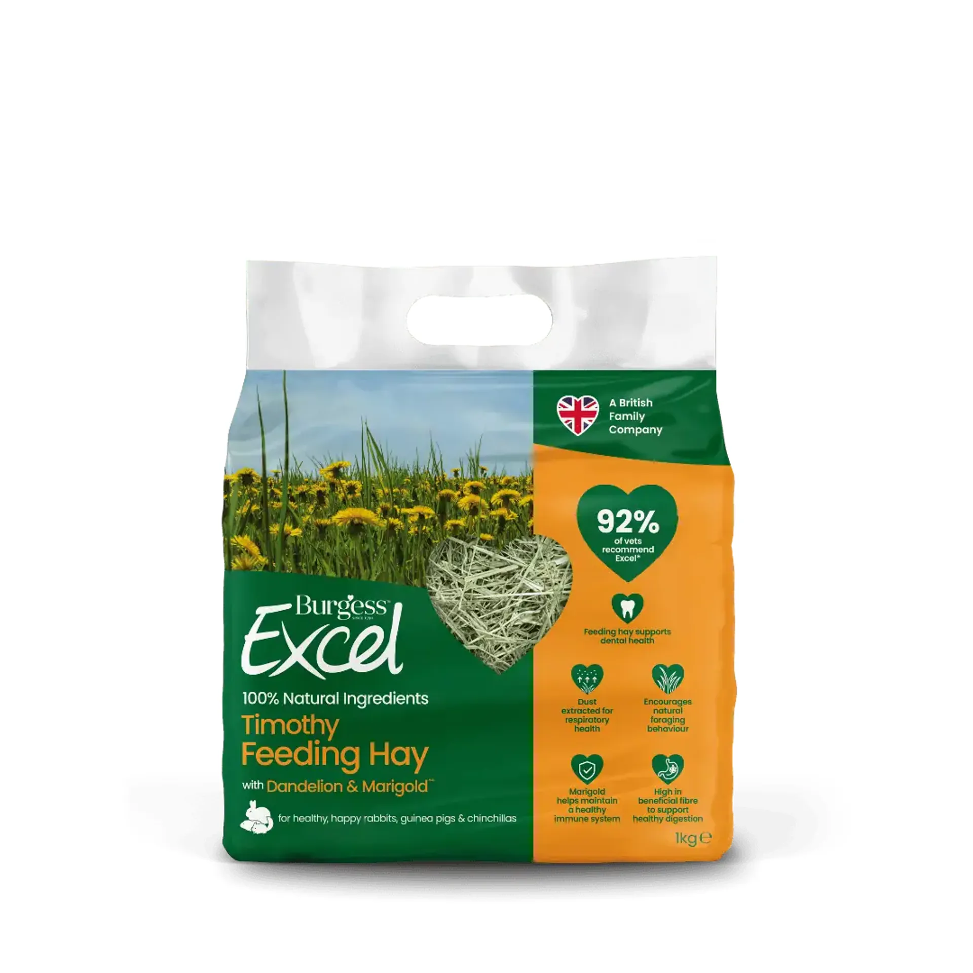 Excel Feeding Hay with Dandelion and Marigold is a natural field-grown product produced in the countryside. As such although all possible precautions are taken it is possible for extraneous matter items from the field to find their way into the product without detection.