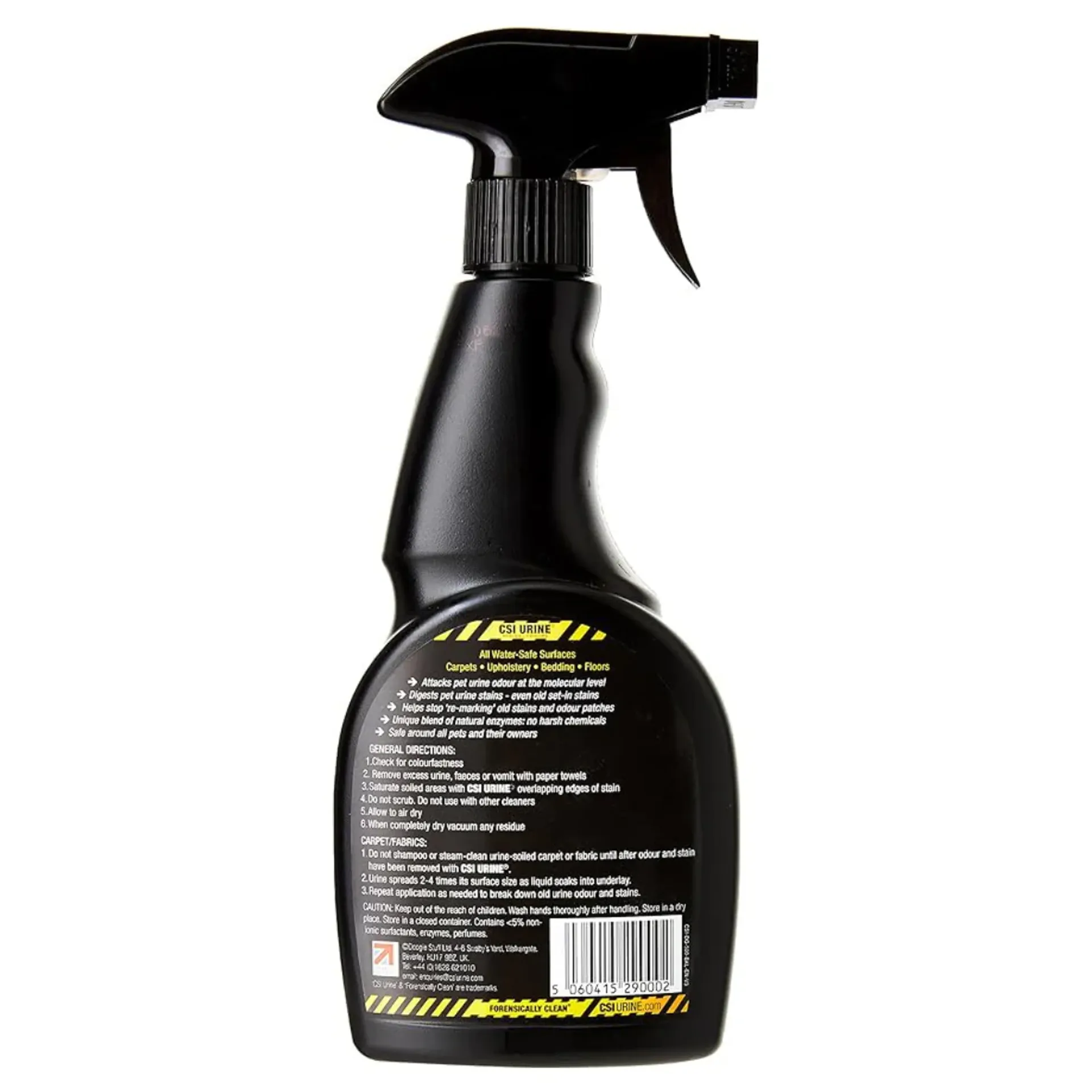 CSI URINE is a revolutionary cleaning solution designed to tackle the toughest pet stains and odours with scientific precision. This advanced formula combines natural enzymes, ‘friendly’ micro-organisms, and surfactants to eliminate stains and odours at the molecular level, leaving surfaces forensically clean.