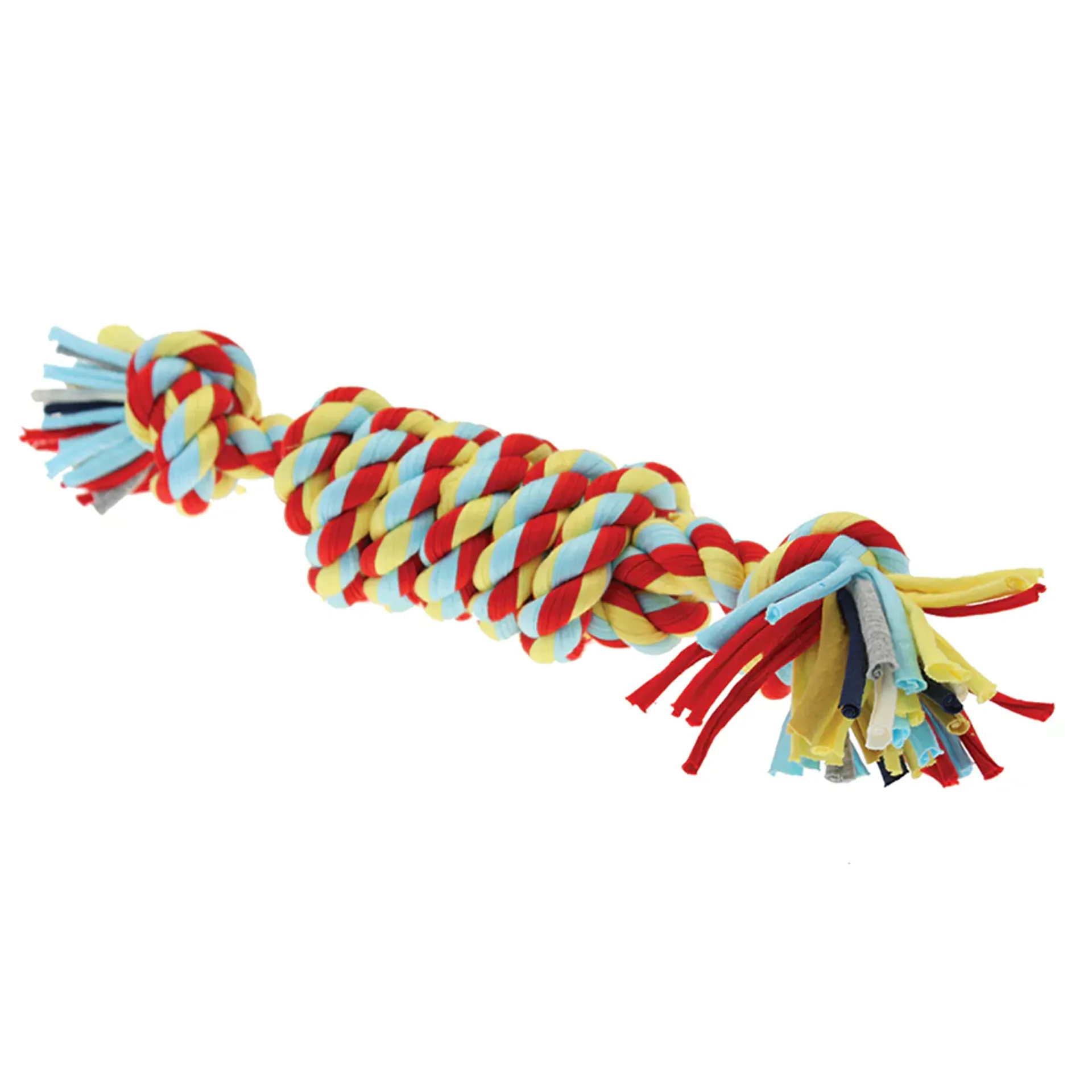 Every dog needs a great toy to chase and play tug with. The Coil Tugger is a vibrant toy that will last many play sessions. Made from recycled materials, this fantastic looking knotted toy is designed with a multi-coloured rope. The Regular version features knotted ends and a knotted body, ensuring your canine friend gets a good grip during play. The Handled coil is equipped with handles on each end, making it perfect for a good tug and pull. The soft rope style is gentle on teeth, and the toy is washable for easy cleaning. Enjoy hours of fun with this knotted body toy.